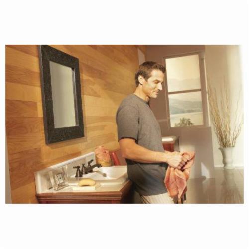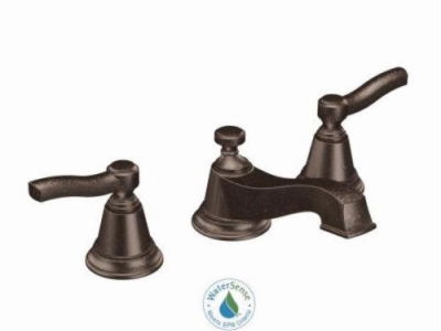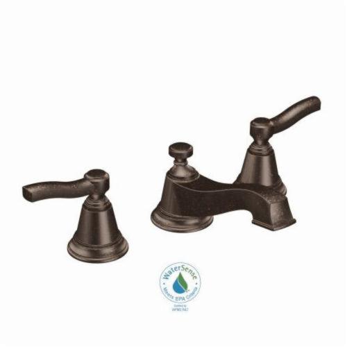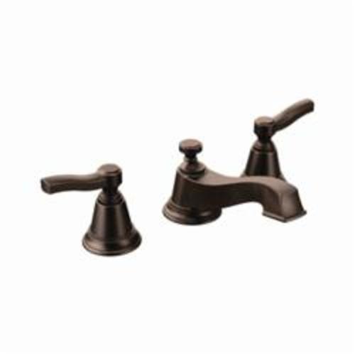 Moen® Widespread Bathroom Faucet, Rothbury™ Collection, 1.2 gpm Flow Rate, 8 to 16 in Center Distance, Fixed Spout, 5-1/4 in Spout Reach, 2.094 in Spout Height, Lever Handle, 2 Handles, Pop-Up Drain, 3 Faucet Holes, 1/2 in Connection, IPS Connection, 3/4 in Maximum Deck Thickness, Deck Mounting, 1224 Ceramic Disc Cartridge, 9.25 in W x 5.24 in D x 3.45 in H Dimensions, Metal, Oil Rubbed Bronze, Domestic