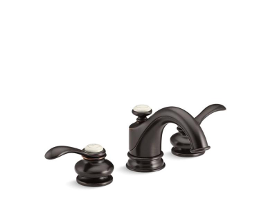 Kohler® Widespread Bathroom Sink Faucet, Fairfax®, 1.2 gpm, 8 to 16 in Center Distance, Stationary Spout, 5 in Spout Reach, 2-1/8 in Spout Height, Lever, 2 Handles, Pop-Up Drain, 3 Faucet Holes, 1/2-14, NPSM, 1-3/8 in Maximum Deck Thickness, Ceramic Disc Valve/Cartridge, 4-1/2 in H, Brass, Oil Rubbed Bronze