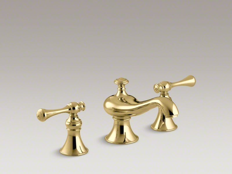 Kohler 16102-4A-PB Widespread Lavatory Faucet, Traditional Lever Handles
