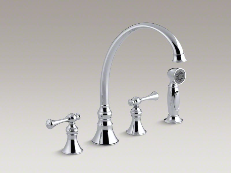 Kohler 16109-4A-CP Kitchen Sink Faucet, 9-3/16" Spout, Sidespray and Traditional Lever Handles