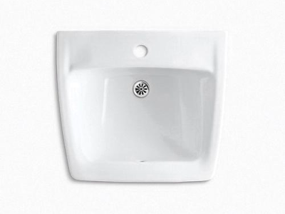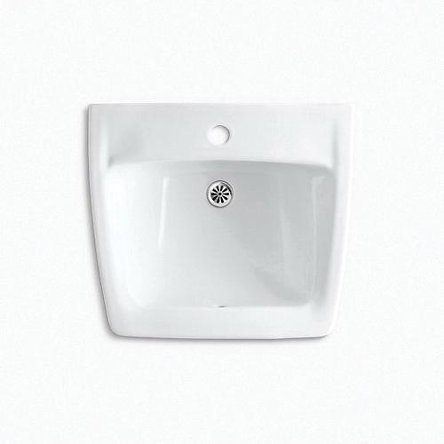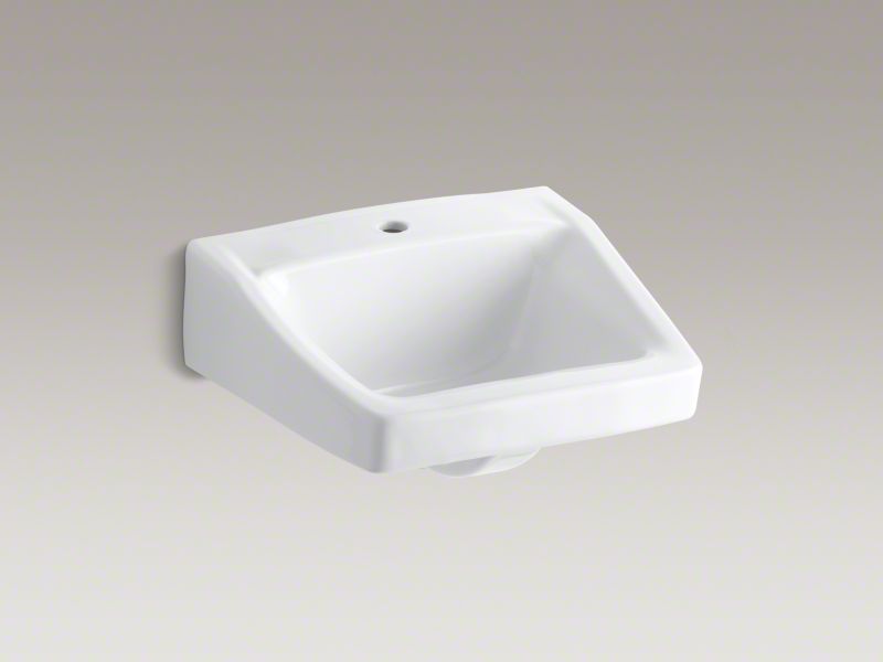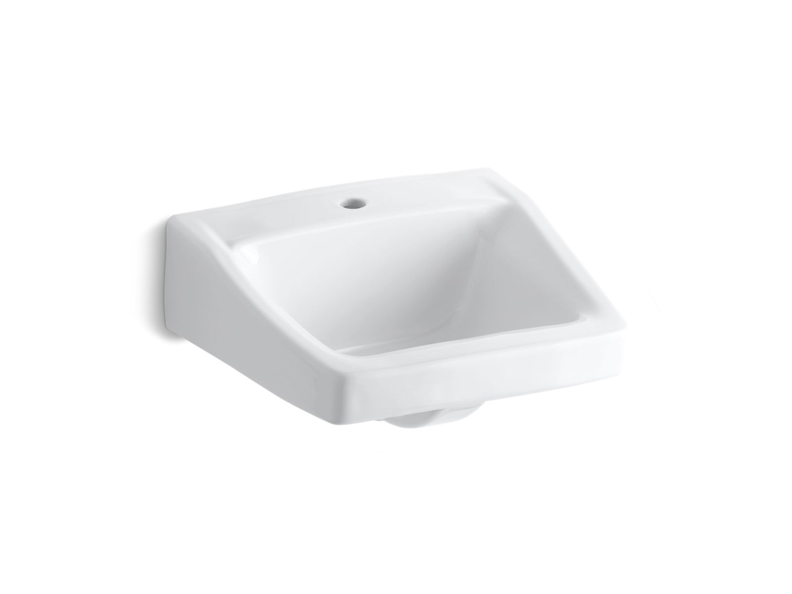 Kohler®, 1722-0, Bathroom Sink, Chesapeake™ Collection, Squared Shape, 14 in L x 11 in W Bowl, 1-3/4 in Drain Opening, 1 Faucet Holes, 1 Basins, 19-1/4 in W x 17-1/4 in D x 8-1/8 in H Overall, Wall/Concealed Arm Mounting, Vitreous China, White, ADA Compliance: Yes