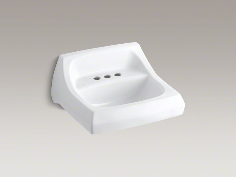 Kohler®, 2005-0, Bathroom Sink With Overflow, Kingston™ Collection, Squared Shape, 16 in L x 10 in W Bowl, 1-3/4 in Drain Opening, 3 Faucet Holes, 4 in Faucet Hole Spacing, 1 Basins, 21-1/4 in W x 18-1/8 in D x 7-1/4 in H Overall, Wall/Concealed Arm Mounting, Vitreous China, White, ADA Compliance: Yes