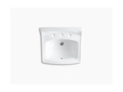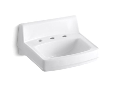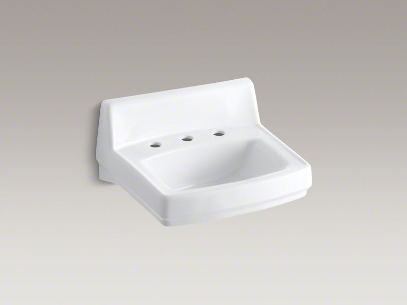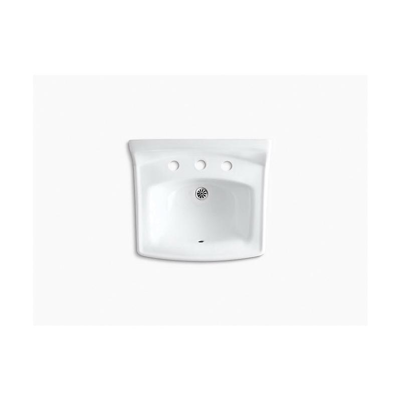 When your lavatory needs to stand up to rigorous use, depend on premium KOHLER materials. Crafted of vitreous china with our exclusive KOHLER glaze, this Greenwich wall-mount lavatory will provide a lifetime of beauty and reliable performance. Its remarkably hard, glossy finish protects the surface for a clean, sanitary sink that maintains its shine under repeated use. This model has drillings for a concealed arm carrier, a faucet with 8" centers and includes a wall hanger.