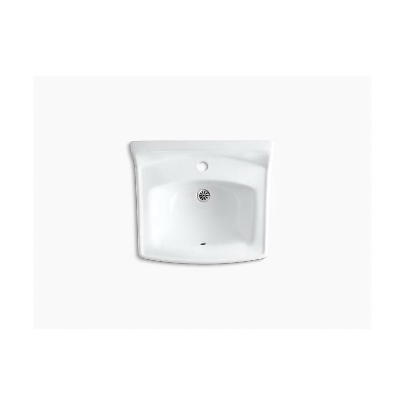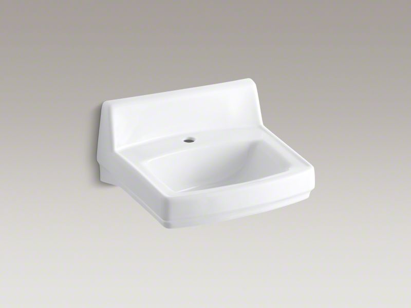 When your lavatory needs to stand up to rigorous use, depend on premium KOHLER materials. Crafted of vitreous china with our exclusive KOHLER glaze, this Greenwich wall-mount lavatory will provide a lifetime of beauty and reliable performance. Its remarkably hard, glossy finish protects the surface for a clean, sanitary sink that maintains its shine under repeated use. This model has drillings for a concealed arm carrier, a single-hole faucet drilling and includes a wall hanger.
