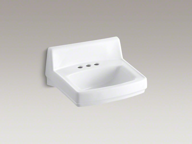 When your lavatory needs to stand up to rigorous use, depend on premium KOHLER materials. Crafted of vitreous china with our exclusive KOHLER glaze, this Greenwich wall-mount lavatory will provide a lifetime of beauty and reliable performance. Its remarkably hard, glossy finish protects the surface for a clean, sanitary sink that maintains its shine under repeated use. This model has drillings for a concealed arm carrier, a faucet with 4" centers and includes a wall hanger.