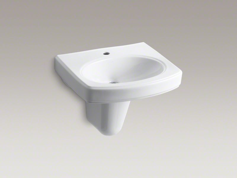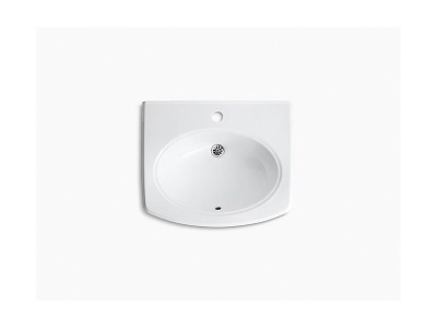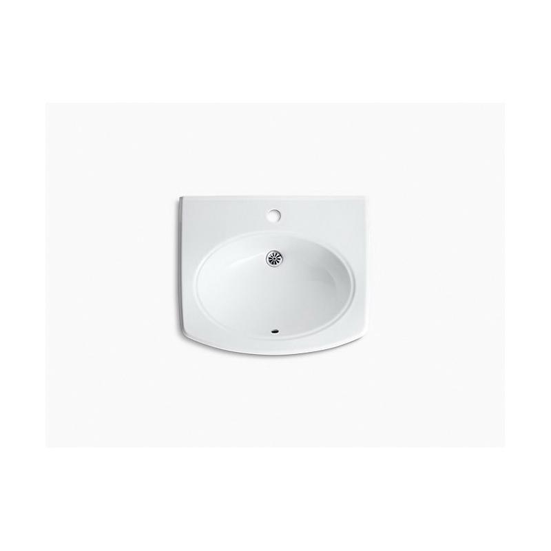 Kohler®, 2035-1-0, Bathroom Sink With Overflow Drain, Pinoir® Collection, Oval Shape, 18 in L x 12 in W Bowl, 1-3/4 in Drain Opening, 1 Faucet Holes, 2 in Faucet Hole Spacing, 1 Basins, 22 in W x 18 in D Overall, Wall Mounting, Vitreous China, White, ADA Compliance: Yes
