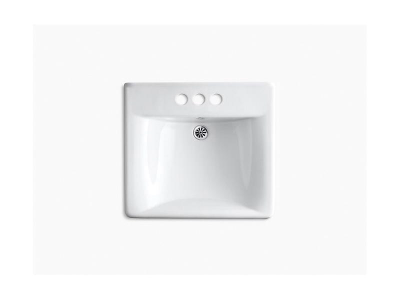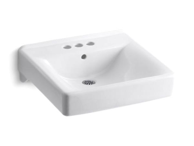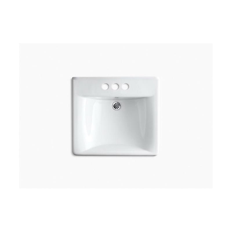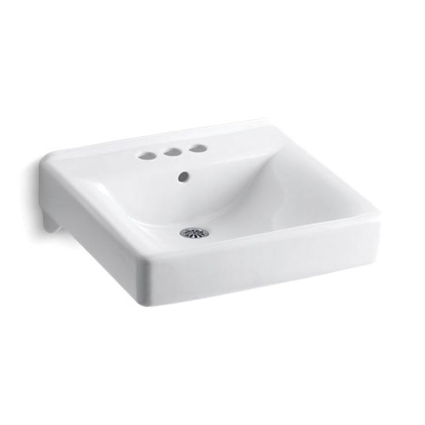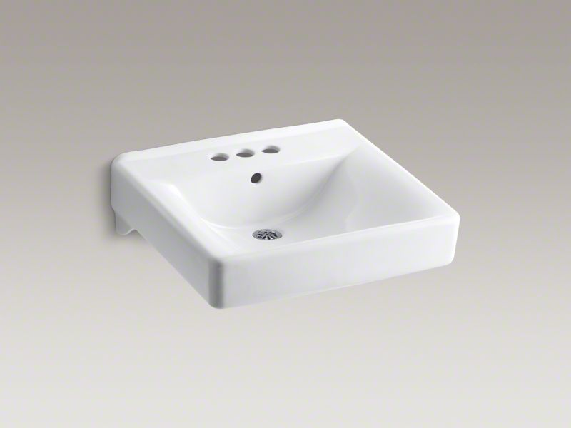 Kohler®, 2054-0, Bathroom Sink With Overflow, Soho® Collection, Squared Shape, 18 in L x 13 in W Bowl, 1-3/4 in Drain Opening, 3 Faucet Holes, 4 in Faucet Hole Spacing, 1 Basins, 20 in W x 18 in D x 7 in H Overall, Wall/Concealed Arm Mounting, Vitreous China, White, ADA Compliance: Yes