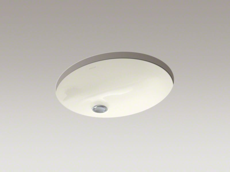 Kohler®, 2209-96, Bathroom Sink With Overflow Drain, Caxton® Collection, Oval Shape, 15 in L x 12 in W x 4 in D Bowl, 1-3/4 in Drain Opening, 1 Basins, 17 in W x 14 in D x 7-1/2 in H Overall, Undermount Mounting, Vitreous China, Biscuit, ADA Compliance: Yes