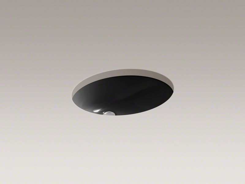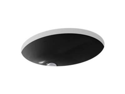 Kohler®, 2210-7, Bathroom Sink With Overflow Drain, Caxton® Collection, Oval Shape, 17 in L x 14 in W Bowl, 1-3/4 in Drain Opening, 1 Basins, 19-1/4 in W x 16-1/4 in D x 7-1/2 in H Overall, Undermount Mounting, Vitreous China, Black, ADA Compliance: Yes