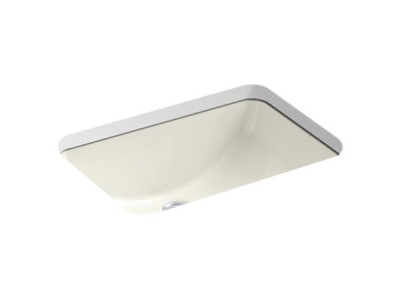 Kohler®, 2214-96, Bathroom Sink With Overflow Drain, Ladena® Collection, Rectangular Shape, 18-3/8 in L x 11-5/8 in W Bowl, 1-3/4 in Drain Opening, 1 Basins, 20-7/8 in W x 14-3/8 in D x 8-1/8 in H Overall, Undermount Mounting, Vitreous China, Biscuit, ADA Compliance: Yes