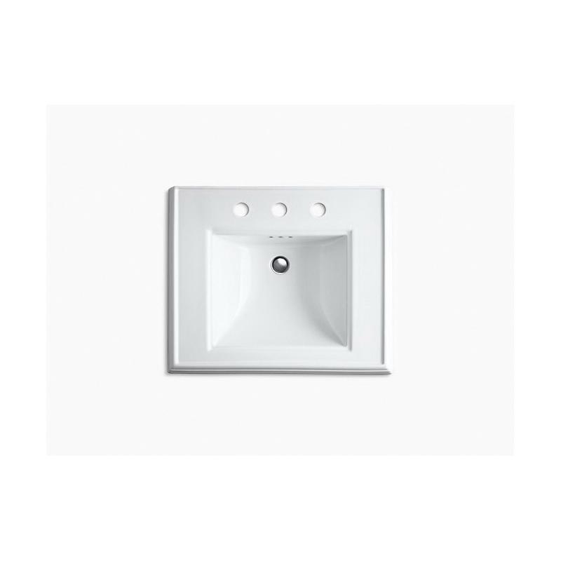 Kohler® Bathroom Sink Basin, Memoirs®, Rectangular, 15 in L x 13 in W Bowl, 1-3/4 in Drain Opening, 3 Faucet Holes, 4 in Faucet Hole Spacing, 1 Basin, 24 in W x 19-3/4 in D x 34-3/8 in H, Wall Mount, Fireclay, White