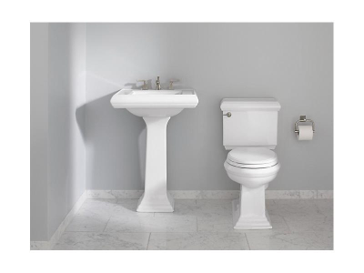 An elegant, timeless style defines the KOHLER® Memoirs collection with Classic design. Inspired by traditional furniture and architectural elements, this rectangular pedestal bathroom sink features decorative edges that resemble crown molding with its rich detailing and refined presence.