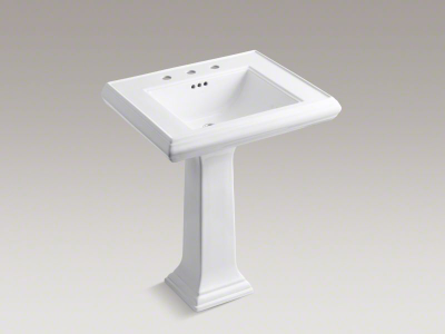 An elegant, timeless style defines the KOHLER® Memoirs collection with Classic design. Inspired by traditional furniture and architectural elements, this rectangular pedestal bathroom sink features decorative edges that resemble crown molding with its rich detailing and refined presence.