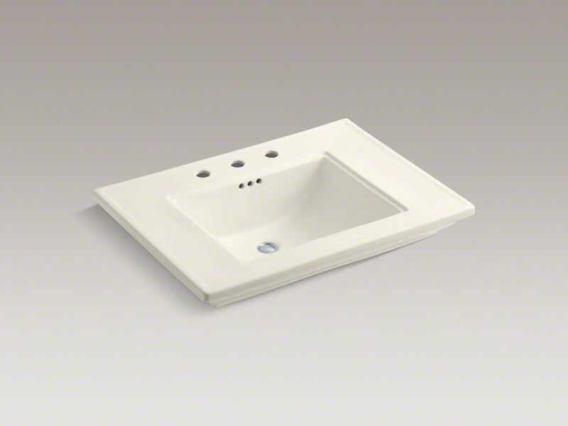 Kohler® 2269-8-96 Memoirs® Stately Design Elegant Bathroom Sink Basin With Overflow Drain, Rectangular Shape, 4 in Faucet Hole Spacing, 30 in W x 21-3/4 in D x 8-5/8 in H, Pedestal/Console Mount, Fireclay, Biscuit