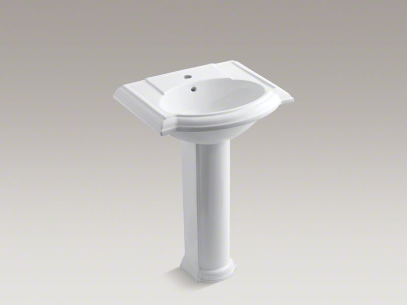 Reminiscent of a bygone era, the molded edges and subtle curves of the Devonshire pedestal sink add distinctive visual impact to your bathroom design.