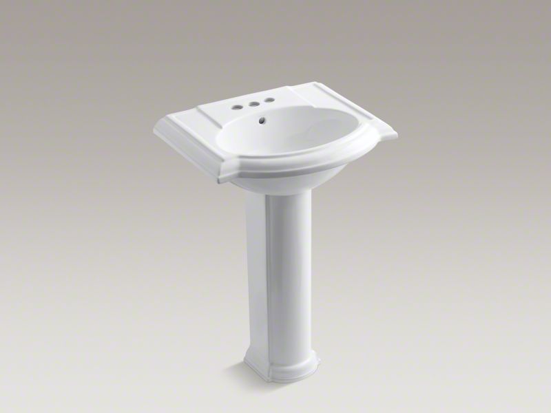 Reminiscent of a bygone era, the KOHLER® Devonshire collection adds old-world elegance to your bathroom. This rectangular pedestal bathroom sink's rich detailing includes molded edges and subtle curves, which impart a sophisticated look.