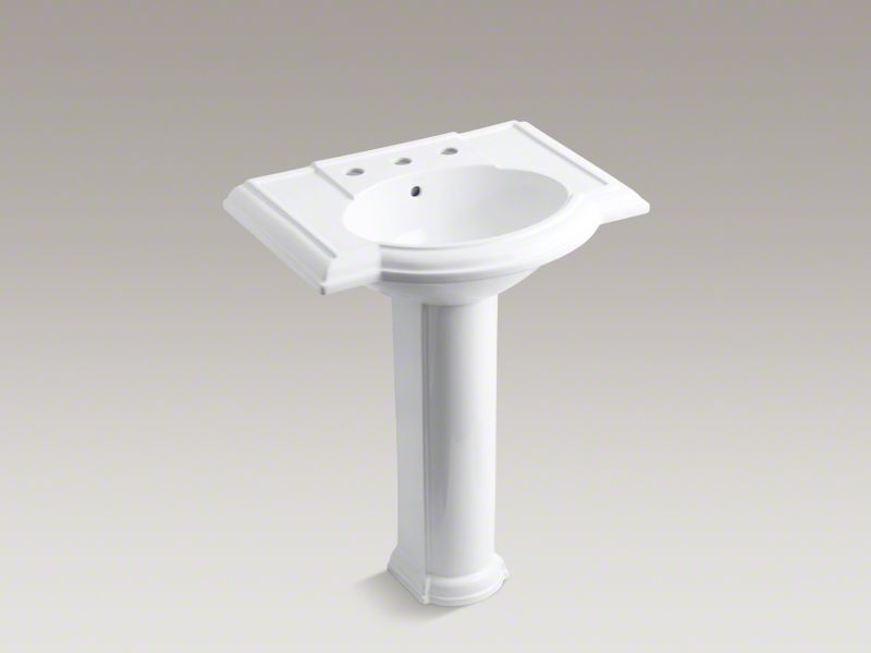 Reminiscent of a bygone era, the molded edges and subtle curves of the Devonshire pedestal sink add distinctive visual impact to your bathroom design.