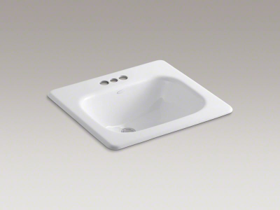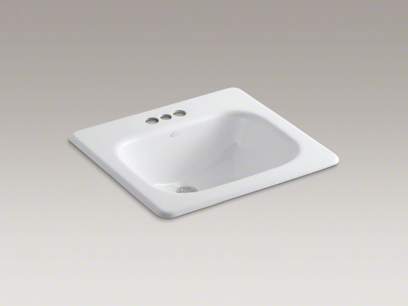 The KOHLER® Tahoe sink features a unique squared design, generous size, and durable construction. Crafted from KOHLER® enameled cast iron, this rectangular drop-in bathroom sink resists scratching, burning, and staining for years of beauty and reliable performance. This drop-in sink has holes for faucets with 4" centers.