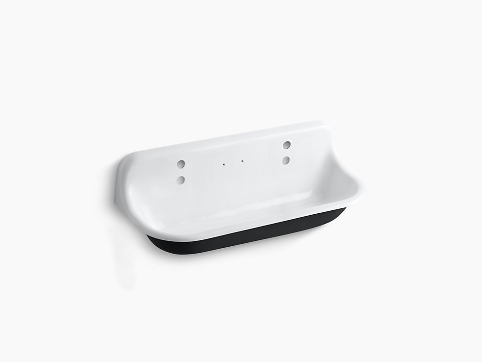 The Brockway 48" wall-mount utility sink offers a classic look with the durability of KOHLER cast iron. This utility sink features drillings for two Triton® Bowe Cannock faucets and one Cannock soap dish.