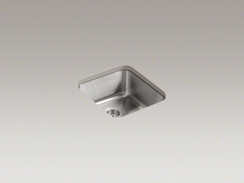 Kohler®, 3331-NA, Kitchen Sink, Undertone® Collection, Rectangular Shape, 14 in Bowl Length, 15-3/4 in Bowl Width, 7-1/2 in Bowl Depth, 3-5/8 in Drain Opening, 1 Bowls, 15-3/4 in L x 17-1/2 in W x 7-5/8 in H Overall, Undermount Mounting, Stainless Steel