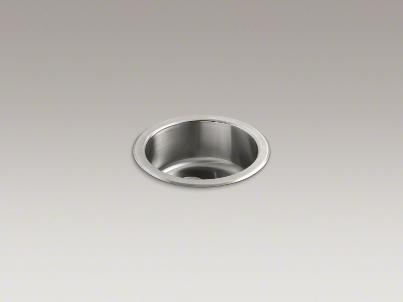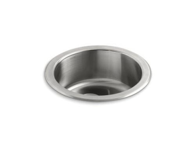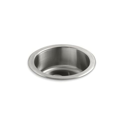 Kohler®, 3341-NA, Dual Mount Kitchen Sink, Undertone® Collection, Round Shape, 15 in Dia x 7-1/2 in D Bowl, 3-5/8 in Drain Opening, 1 Basins, 18-3/8 in W x 7-5/8 in D x 18-3/8 in H Overall, Top/Undermount Mounting, Stainless Steel
