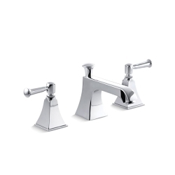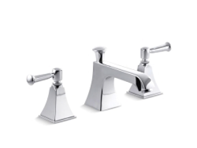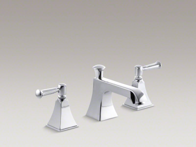 Kohler® Widespread Bathroom Sink Faucet, Stately Design, Memoirs®, 1.2 gpm, 8 to 16 in Center Distance, Stationary Spout, 5 in Spout Reach, 1-7/8 in Spout Height, Stately Faceted Lever, 2 Handles, Pop-Up Drain, 3 Faucet Holes, 1-3/8 in Maximum Deck Thickness, Ceramic Disc Valve/Cartridge, 5 in L x 8 in W x 3-1/4 in H, Solid Brass, Polished Chrome