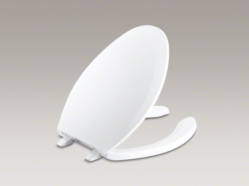 Kohler® Toilet Seat, Lustra™, Elongated Bowl, Open Front, Plastic Hinge, 5-1/2 in Mounting Hole, 14-3/16 in Width, 17-3/16 in Length, 1 in Thickness, Plastic, White