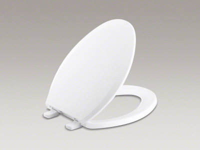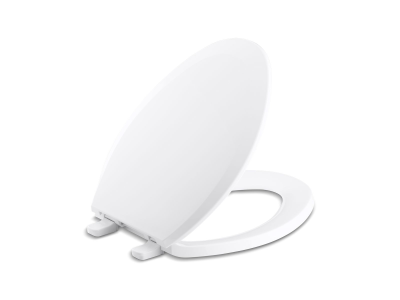 Featuring sturdy, stain-resistant plastic construction, this KOHLER® Lustra toilet seat blends with any bathroom decor. Contoured for comfort, the seat fits most elongated toilets. This Quick-Release™ elongated toilet seat features innovative technology that makes it easy to install and clean.