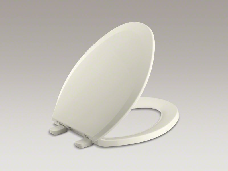 Kohler® Toilet Seat, Lustra™, Elongated Bowl, Quick Release Hinge, 18-5/8 in Bolt to Seat Front, Closed Front, Plastic Hinge, 5-1/2 in Mounting Hole, 14-3/16 in Width, 1 in Height, 17-13/16 in Length, 1 in Thickness, Polypropylene, Biscuit
