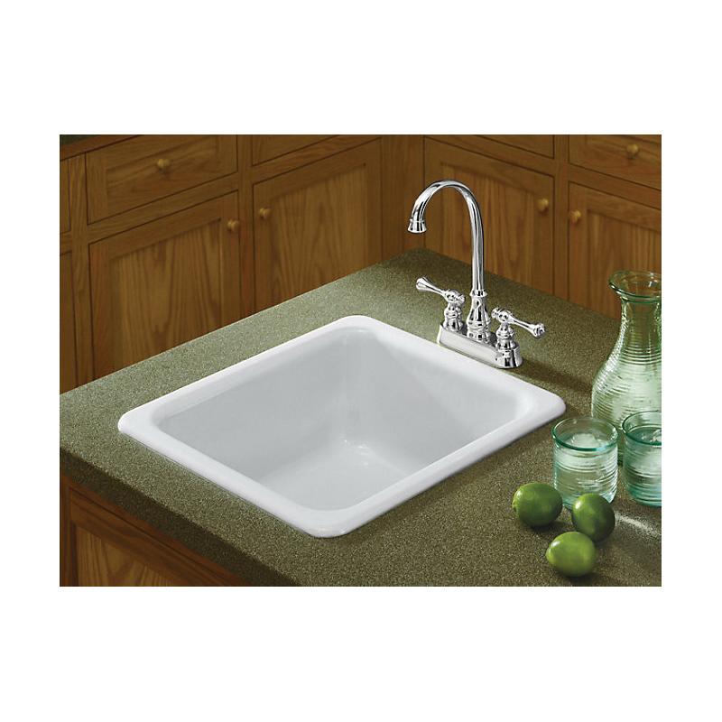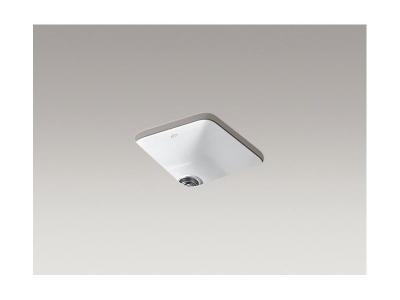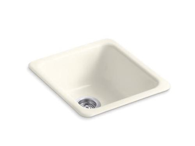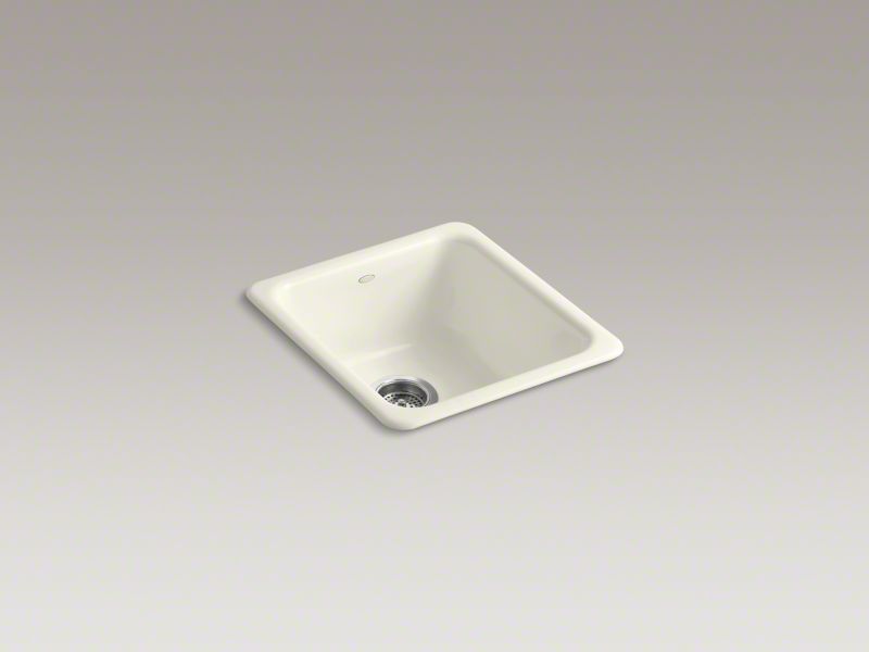 Kohler®, 6584-96, Kitchen Sink, Rectangular Shape, 14 in Bowl Length, 16 in Bowl Width, 7-1/2 in Bowl Depth, 3-7/8 in Drain Opening, 1 Bowls, 17 in L x 18-3/4 in W x 8-1/4 in H Overall, Top/Undermount Mounting, Enameled Cast Iron, Biscuit