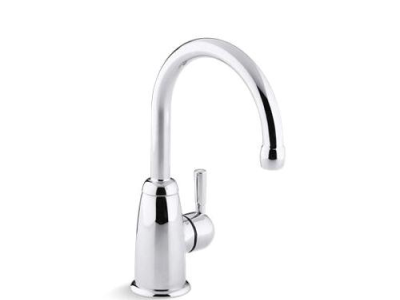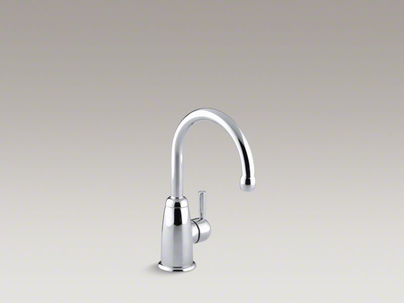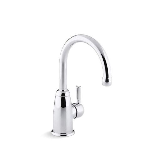 Kohler® Beverage Faucet, Contemporary Style, Wellspring®, 1.6 gpm, High-Arc Rotating Gooseneck Spout, 4-7/8 in Spout Reach, 8-3/4 in Spout Height, Lever, 1 Handles, 1 Faucet Holes, 3/8 in, Compression, 5/8 in Maximum Deck Thickness, Deck Mount, Ceramic Disc Valve/Cartridge, 4 in L x 2 in W x 8-3/4 in H, Solid Brass, Polished Chrome