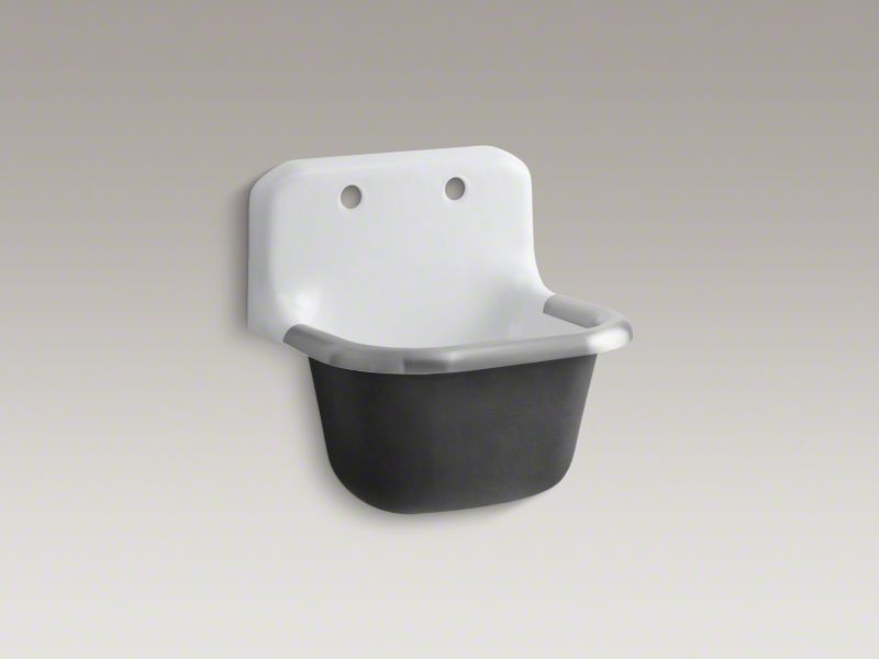 Bring functionality and classic KOHLER styling to your workspace with the Bannon wall-mount service sink. This deep, single-basin sink is constructed of KOHLER Cast Iron for years of reliable performance, and includes a rim guard for added durability. This model features two-hole drilling on the backsplash for faucets with 8" centers.