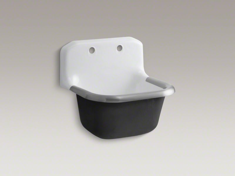 Bring functionality and classic KOHLER styling to your workspace with the Bannon service sink. This deep, single-basin sink is constructed of KOHLER Cast Iron for years of reliable performance, and includes a rim guard for added durability. This model features a two-hole drilling on the backsplash for faucets with 8" centers.