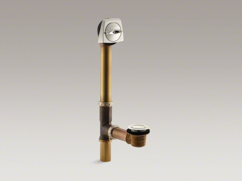 The Clearflo adjustable trip lever pop-up drain works perfectly with 14- to 16-inch deep baths. Your bath will be even more relaxing because you can depend on solid-brass construction for durability and reliability. KOHLER finishes resist corrosion and tarnishing, exceeding industry durability standards over two times. And you have installation flexibility with above- or through-the-floor options.