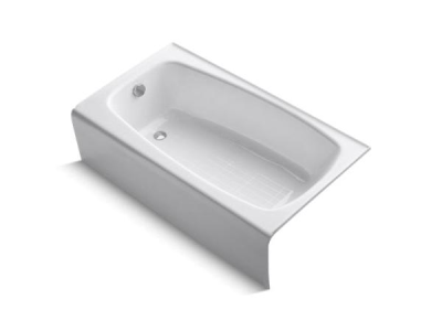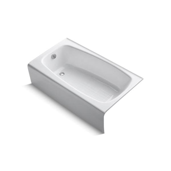 Kohler® Bathtub, Seaforth™, Soaking Hydrotherapy Bath Therapy, Rectangular, 54 in Length, 30-1/4 in Width, 14 in Height, 30 gal Water, Left Drain Location, 1-1/2 in Drain, 37 x 22 in Bottom Basin/48 x 24 in Top Basin Bathing Well, 8-5/8 in Soaking Depth, 8-5/8 in Overflow Height, 3-Wall Alcove Mount, Cast Iron, Enamel Coated/White, Import