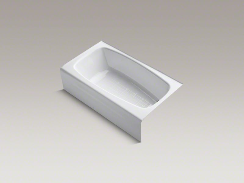 Kohler® 746-0 Seaforth™ Bathtub With Integral Front Apron, Soaking Hydrotherapy, Rectangular Shape, 54 in L x 31 in W, Right Drain, Enamel Coated/White