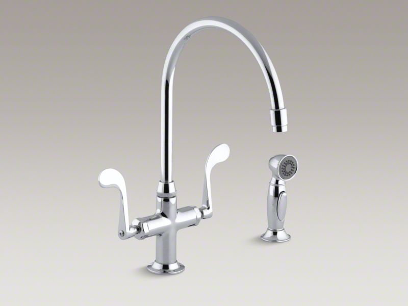 Kohler 8763-CP Kitchen Sink Faucet, Wristblade Handles and Sidespray