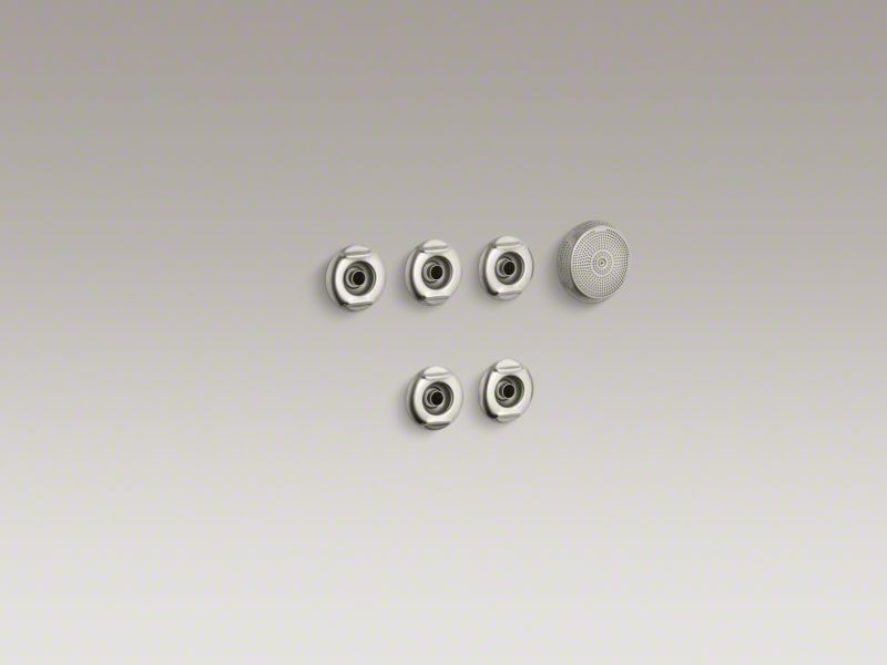 Personalize your whirlpool bath with this five-jet whirlpool trim kit. These attractive jet fixtures are constructed from durable plastic, and are available in a variety of metal finishes or color-matched plastic. Designed for easy installation, the jets can be inserted directly into your whirlpool's jet housings. Metal finish kits also come with a matching suction cover, which fits over suction openings.