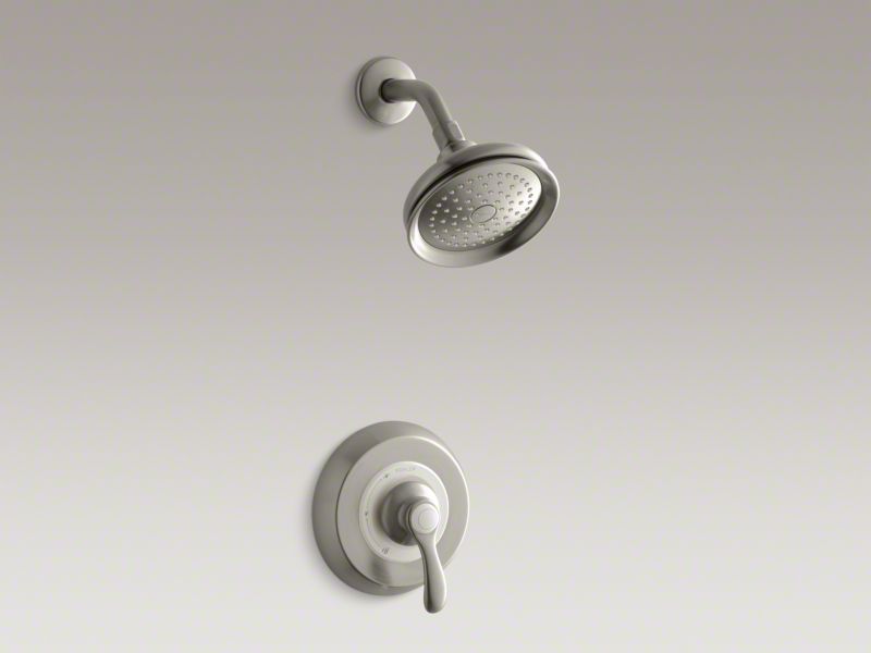 Fairfax faucets bring a touch of elegance and nostalgia to the bathroom. This Fairfax shower faucet trim features an adjustable, single-function showerhead and a lever handle, making it easy to coordinate the look of your shower. Pair this trim with a Rite-Temp(R) pressure-balancing valve, which maintains your desired water temperature during pressure fluctuations.