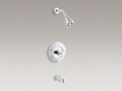 The Antique bath and shower faucet trim adds classic details with modern convenience to your traditional bath decor. This trim, which includes a showerhead, spout, and six-prong handle, also requires your choice of ceramic dial plate for a complete look. Pair this trim with a Rite-Temp(R) pressure-balancing valve, which maintains your desired water temperature during pressure fluctuations.