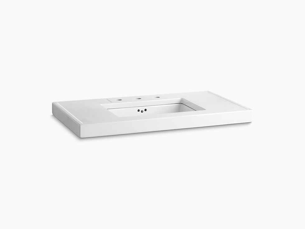 Kohler K-3029-0 42 inch x 22 inch Kathryn Fireclay Console Tabletop Drilled with 10 inch Centers - White