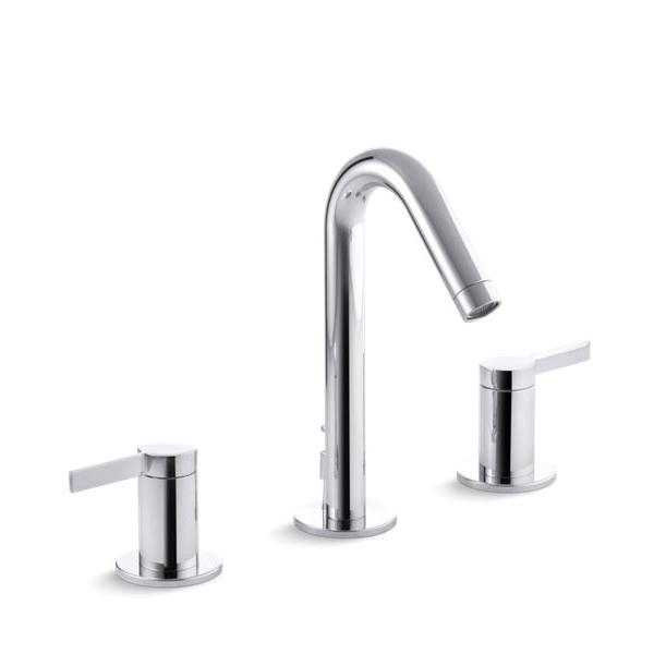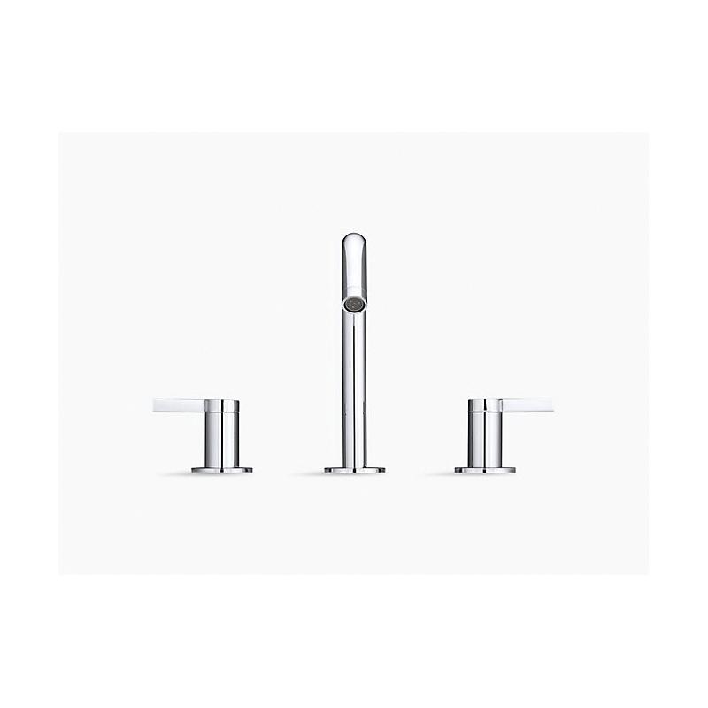 Kohler® Widespread Bathroom Sink Faucet, Stillness®, 1.2 gpm, 8 to 16 in Center Distance, Stationary Spout, 3-7/8 in Spout Reach, 4-1/2 in Spout Height, Lever, 2 Handles, Pop-Up Drain, 3 Faucet Holes, 1-3/8 in Maximum Deck Thickness, Ceramic Disc Valve/Cartridge, 7-1/4 in H, Brass, Polished Chrome