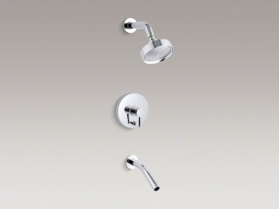 With their streamlined style and understated detailing, Stillness faucets and accessories are an ideal complement for modern bathrooms. This bath and shower trim includes a spout, showerhead, and lever handle--each reflecting a calm, minimalist aesthetic. Pair this trim with a Rite-Temp (R) pressure-balancing valve with push-button diverter to maintain your desired water temperature during pressure fluctuations.