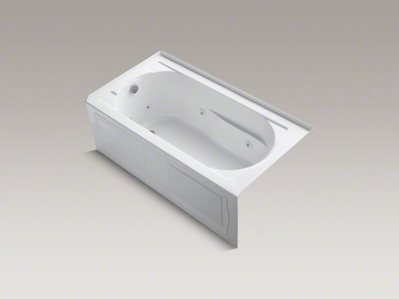 The KOHLER® Devonshire whirlpool reveals elegant, old-world style while delivering the modern comforts of hydrotherapy massage. With adjustable jets to soothe away the day's tension, this 60" x 32" rectangular alcove bath is a haven for private relaxation. Features a left-hand drain.