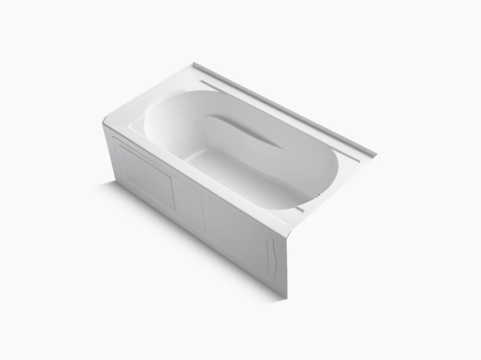 Bathe in beauty with this classically designed bath. Revealing traditional, elegant lines, the KOHLER® Devonshire 60" x 32" rectangular alcove bath offers old-world appeal in a sleek silhouette. Lumbar supports and armrests invite you to lean back and relax, and the textured floor provides sure footing. An integrated flange helps protect against behind-the-wall water.