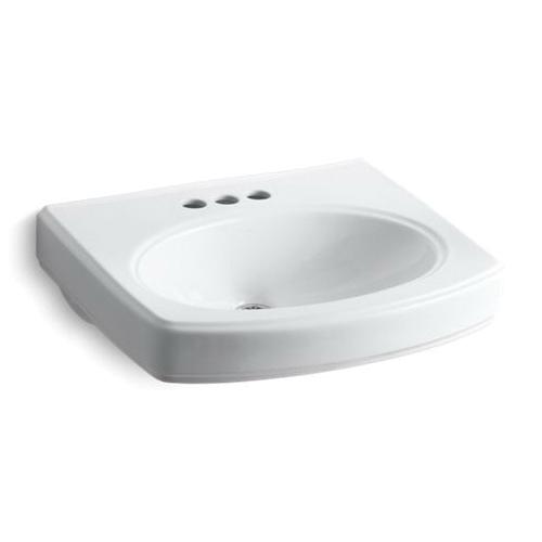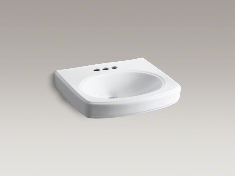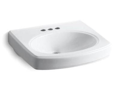 Kohler®, 2028-4-0, Bathroom Sink With Overflow Drain, Pinoir® Collection, Oval Shape, 18 in L x 12 in W Bowl, 1-3/4 in Drain Opening, 3 Faucet Holes, 4 in Faucet Hole Spacing, 1 Basins, 22 in W x 18 in D Overall, Wall Mounting, Vitreous China, White, ADA Compliance: Yes