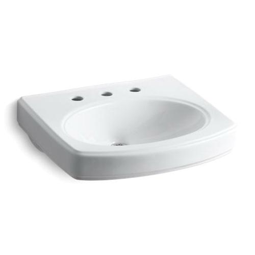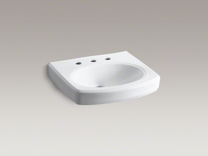 Kohler® 2028-8-0 Pinoir® Bathroom Sink With Overflow Drain, Oval Shape, 8 in Faucet Hole Spacing, 22 in W x 18 in D, Wall Mounting, Vitreous China, White