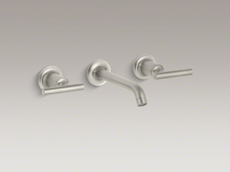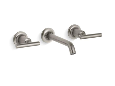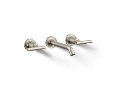 Kohler® Widespread Bathroom Sink Faucet Trim, Purist®, 1.2 gpm, 8 in Center Distance, 35 deg Angle Stationary Spout, 6-3/4 in Spout Reach, Lever, 2 Handles, 3 Faucet Holes, Function: Traditional, Wall Mount, Ceramic Disc Valve/Cartridge, 6-3/4 in L x 8 in W x 8-1/2 in H, Solid Brass, Vibrant® Brushed Nickel