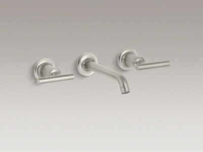 Capturing the style of minimalist design, KOHLER® Purist faucets deliver streamlined water control. This wall-mount bathroom sink faucet trim features a 35° angled spout and cross handles for easy operation. The convenient wall-mount design provides a clutter-free countertop in your bath or powder room. When paired with a two-handle ceramic disc valve, this trim offers optimal performance. Combine it with bath accessories from the Purist collection for a distinctively modern and unified decor.