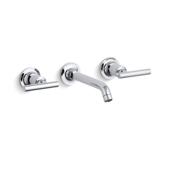 Kohler® Widespread Bathroom Sink Faucet Trim, Purist®, 1.2 gpm, 8 in Center Distance, 35 deg Angle Stationary Spout, 6-3/4 in Spout Reach, Lever, 2 Handles, 3 Faucet Holes, Function: Traditional, Wall Mount, Ceramic Disc Valve/Cartridge, 6-3/4 in L x 8 in W x 8-1/2 in H, Solid Brass, Polished Chrome